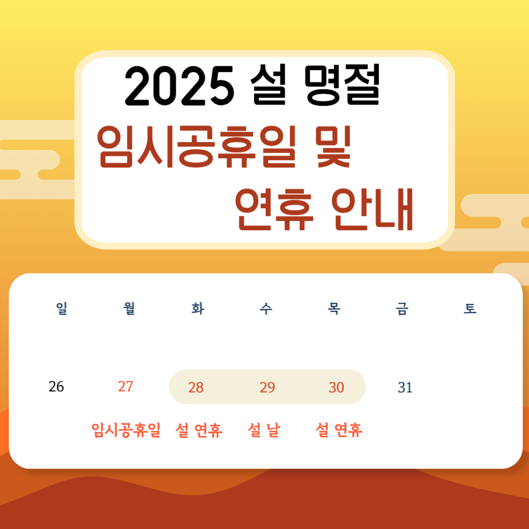2025년 설 명절을 맞아 정부는 1월 27일(월)을 임시공휴일로 지정했습니다. 기존 설 명절 연휴는 1월 28일(화)부터 1월 30일(목)까지였으나, 1월 27일이 임시공휴일로 지정되면서 국민들에게 더 긴 휴식 시간을 제공하고자 했습니다.