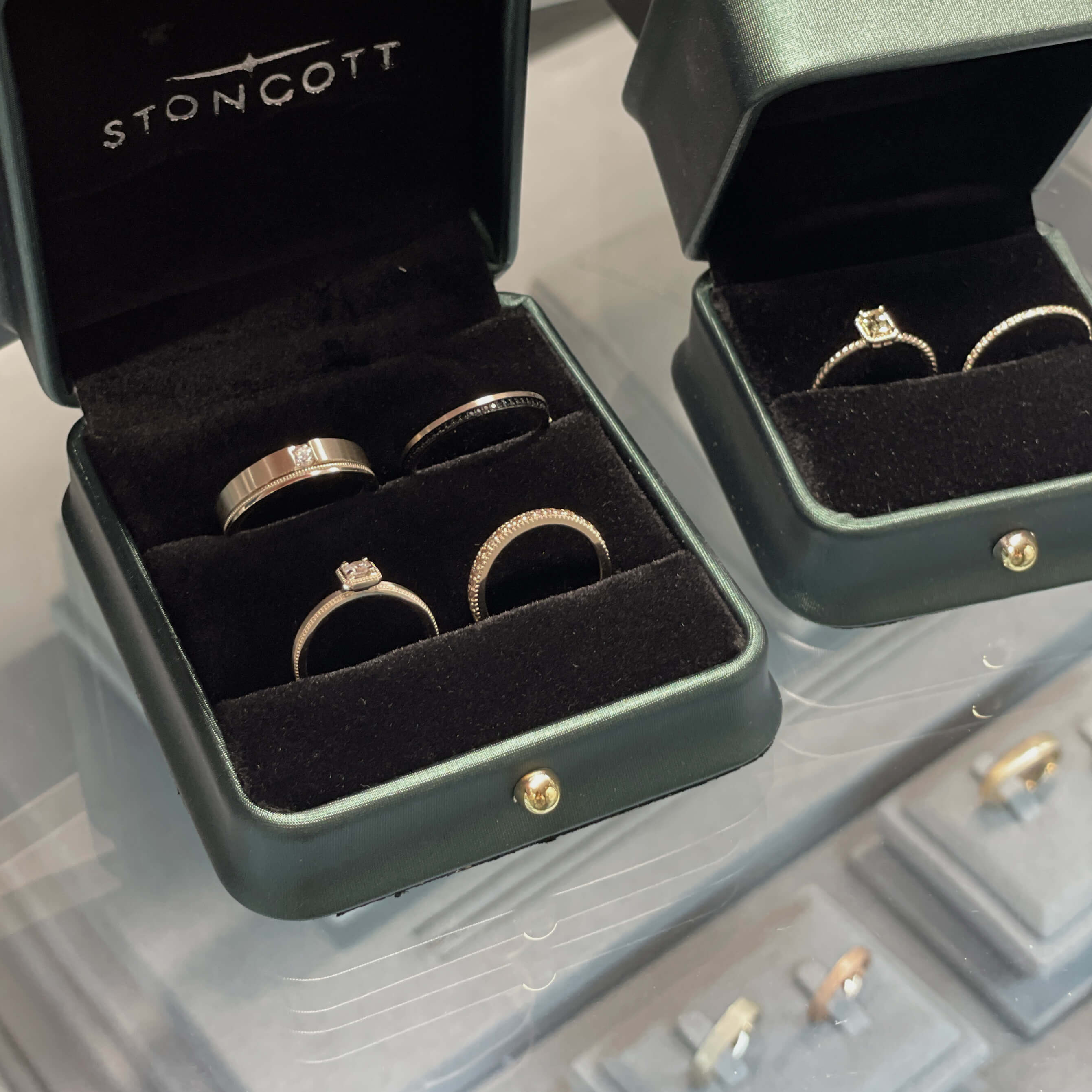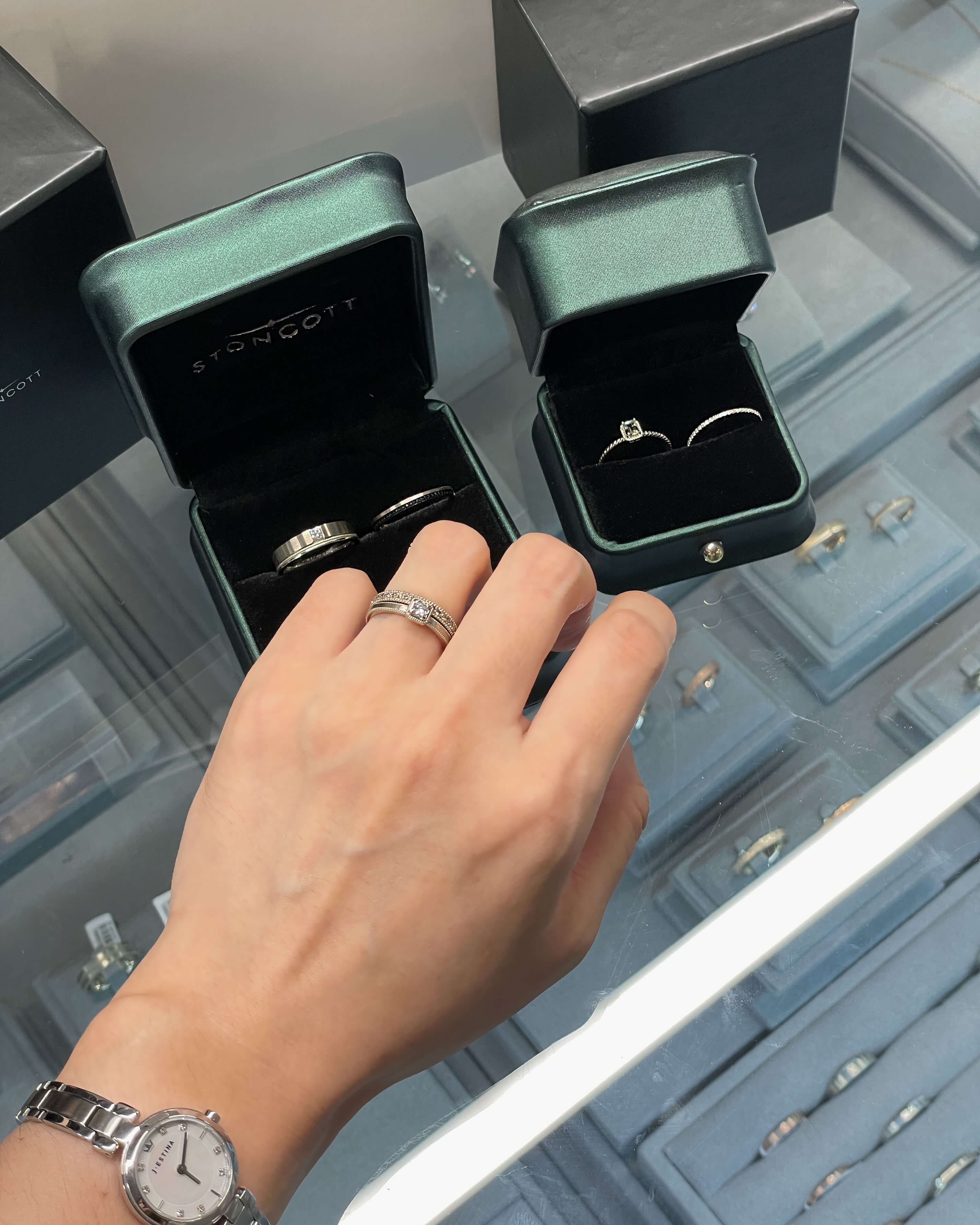 설레는 마음으로 매장에 방문하였고 웨딩반지를 보여주셨습니다. 저희가 생각했던 것보다 더 예쁘게 제작되어 나온 것 같아 기분이 좋았습니다. 남자 반지가 너무 예뻐서 살짝 질투가 날 정도로 마음에 들었어요. 오빠도 표현을 잘 안 하는 편인데 예쁘다고 하더라고요. 계약하고 나서 알고 보니 스톤콧 대표님이 남자분이시더라고요. 그래서 그런지 남자반지 디자인이 독특하고 멋진 스타일이 많은 것 같습니다.